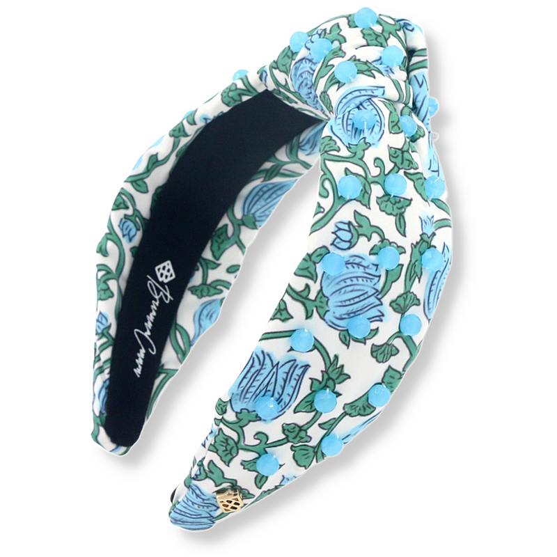 Cornflower Blue & Green Block Printed Headband