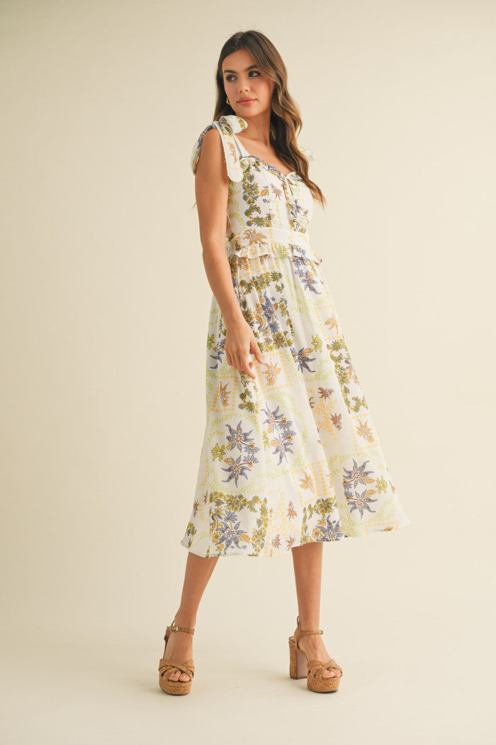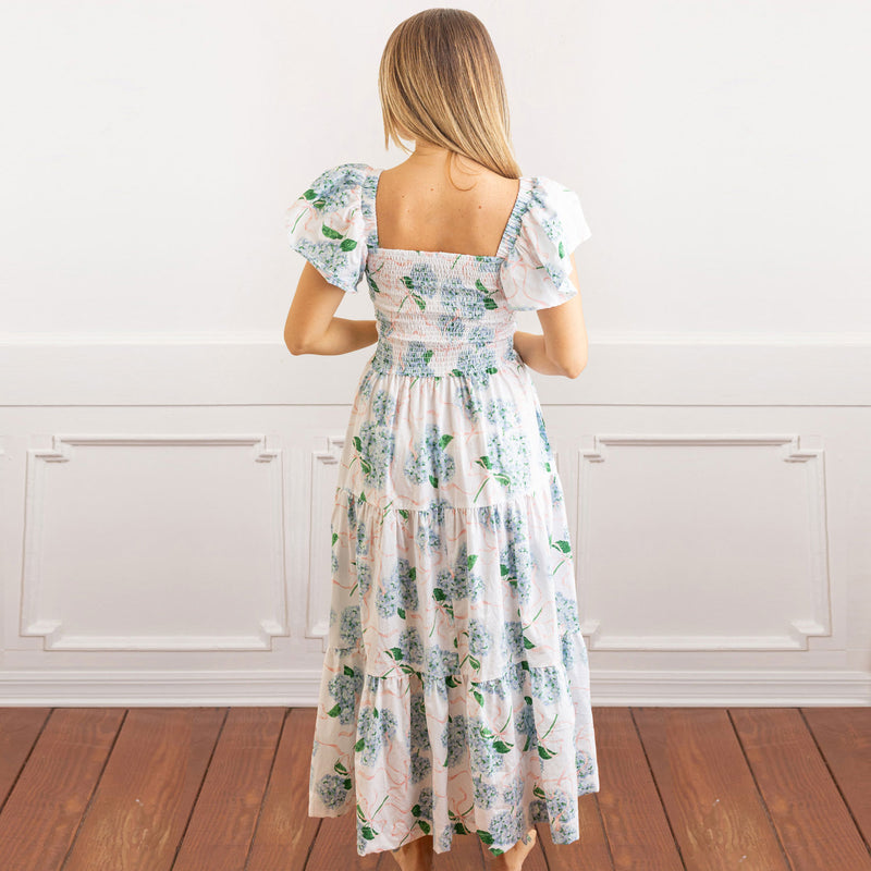 Hydrangea Ribbons Smocked Flutter Sleeve Dress
