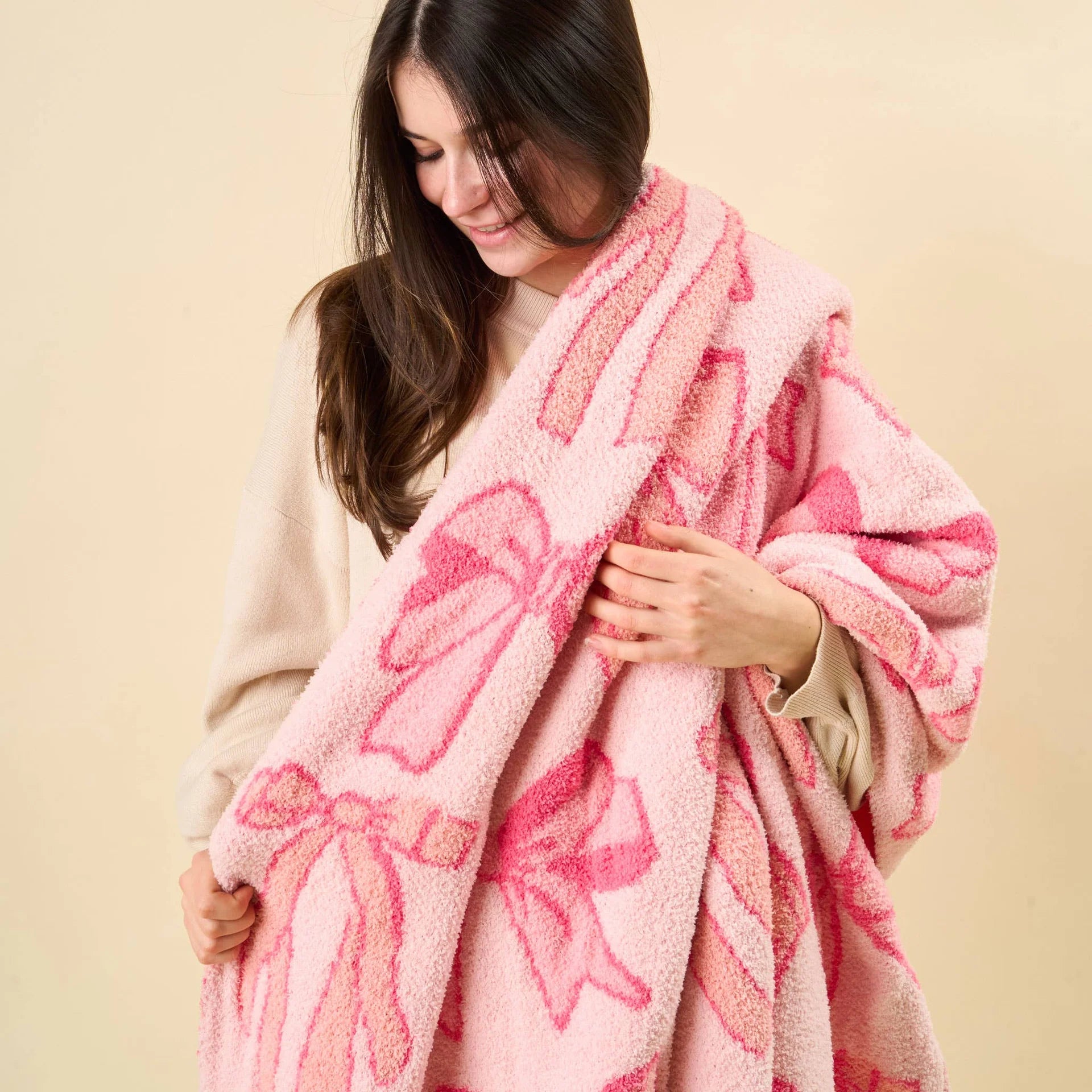 Cozy Dreams Luxe Blanket-Blushing Bows Pink