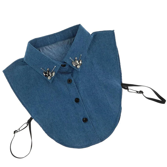 Classic denim meets a little sparkle 💙✨ This statement detachable collar features soft chambray fabric with crystal-embellished collar tips for the perfect mix of casual and glam. Designed to give you that layered, styled look without the bulk of a full shirt—easy, polished, and effortlessly cool. Fits all sizes.