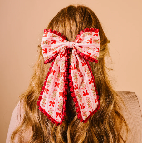 Add a little extra flair with our Fancy Frills Hair Bow—a statement style with irresistible charm. Featuring a larger-than-life silhouette, playful prints, and a sweet ruffle edge, this puffy bow is made to turn heads. Crafted from soft, high-quality fabric and finished with a gold barrette clip, it's equal parts pretty and practical—perfect for dressing up any day with a touch of darling drama. Stylish and versatile for any occasion Soft, high-quality fabric with a chic, polished look Secure, comfortable all-day hold Gold barrette clip closure